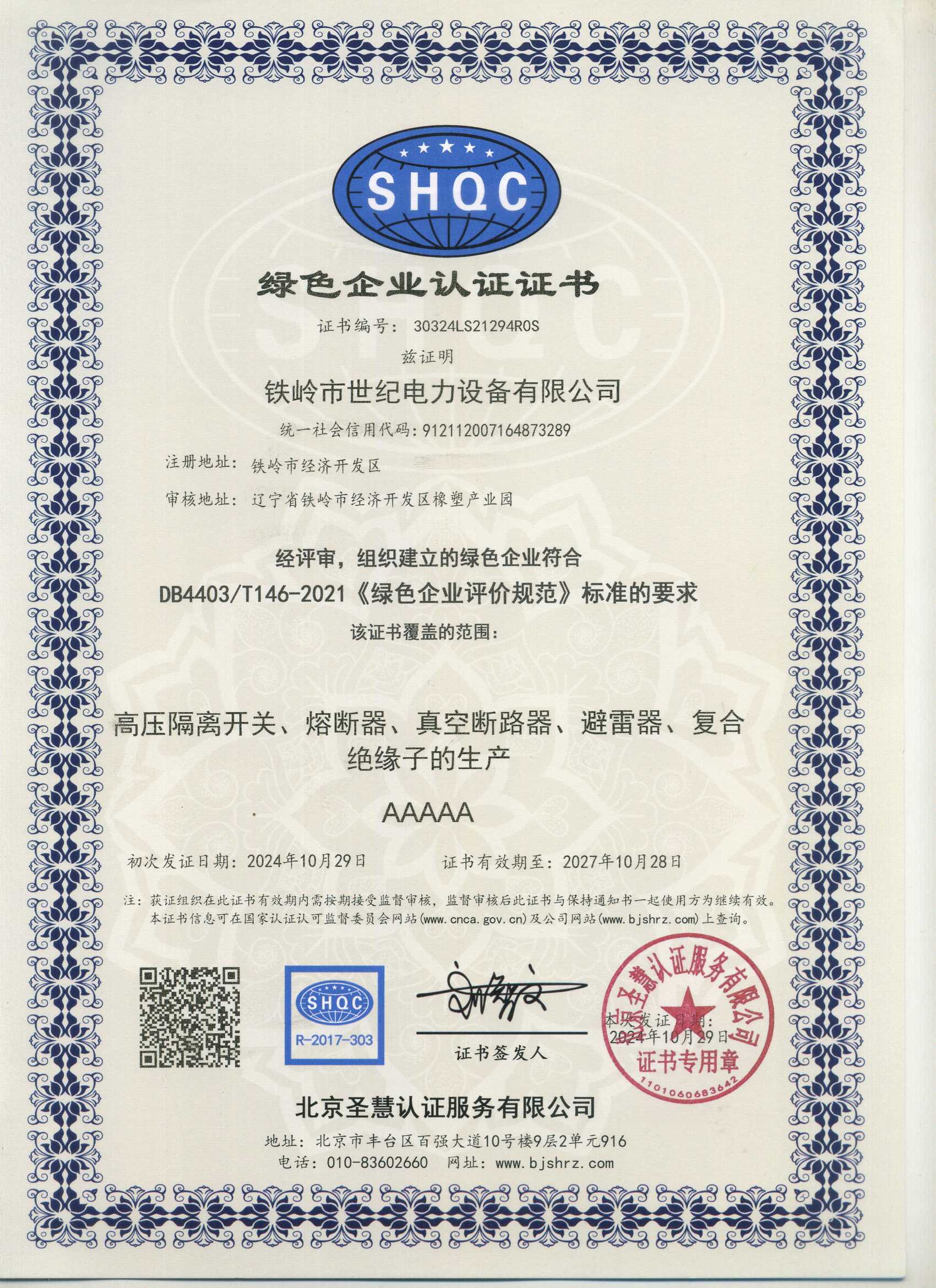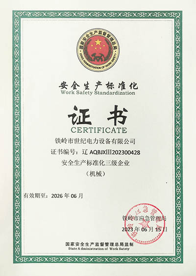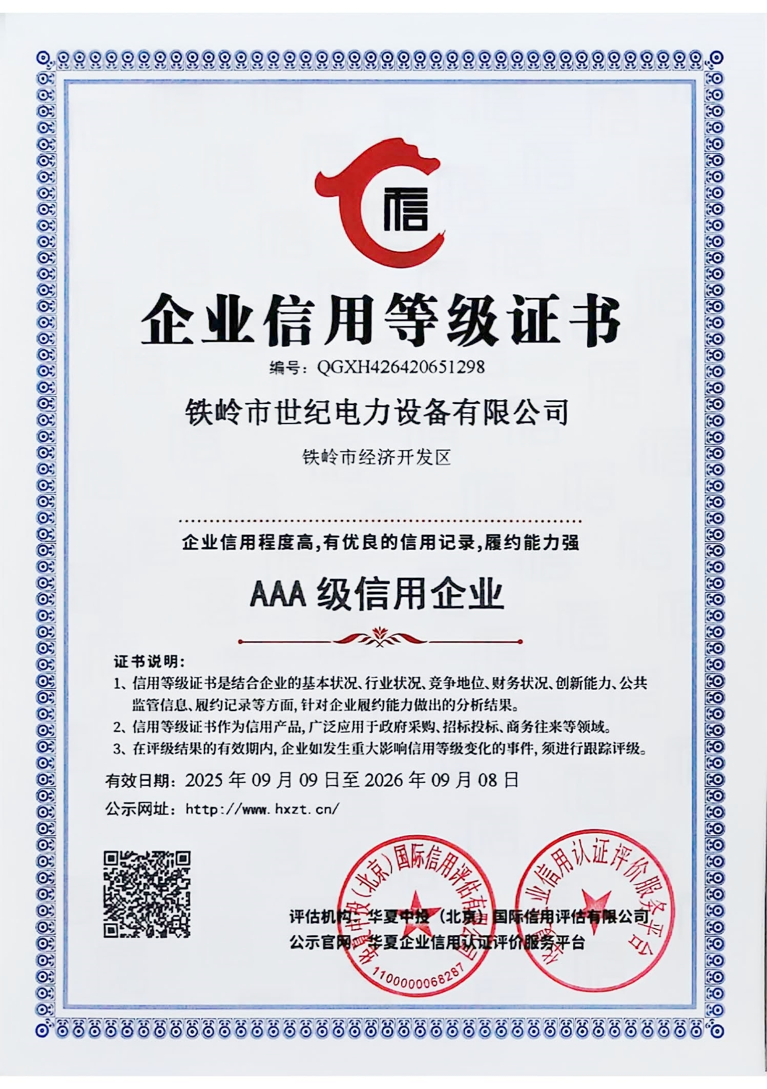 鐵嶺市世紀電力設備有限公司是集科研開發(fā)、生產制造、用戶服務于一體的國家高新技術企業,始建于1999年,位于鐵嶺經濟開發(fā)區,占地面積5萬余平方米,建筑面積2萬余平方米。主要從事國家電網配套戶外高低壓隔離開關、電力電纜、變壓器成套裝置、高低壓開關柜、箱式變電站、絕緣子等產品的研發(fā)、生產和銷售。公司現有國家發(fā)明專利6項、實用新型專利9項,公司通過了ISO9001國際質量管理體系認證、ISO14001環(huán)境管理體系認證和ISO 45001職業健康安全體系認證。